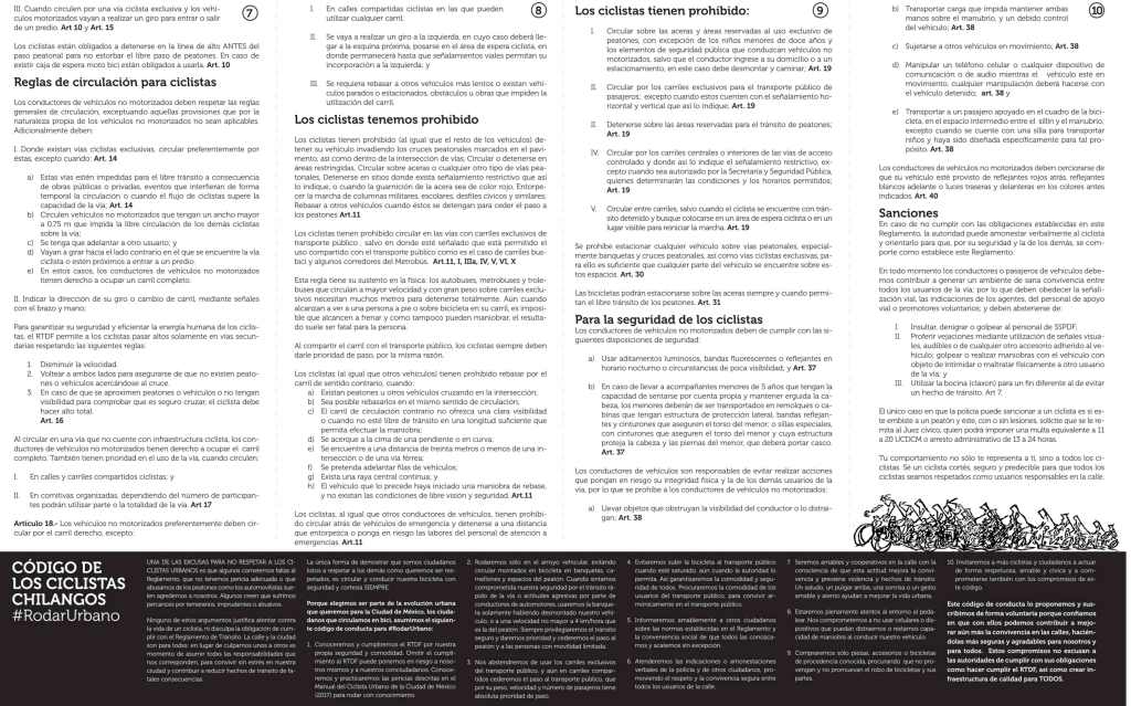 Nueva cartilla de los derechos y obligaciones de ciclista urbano, Versión 1.0, 2016.