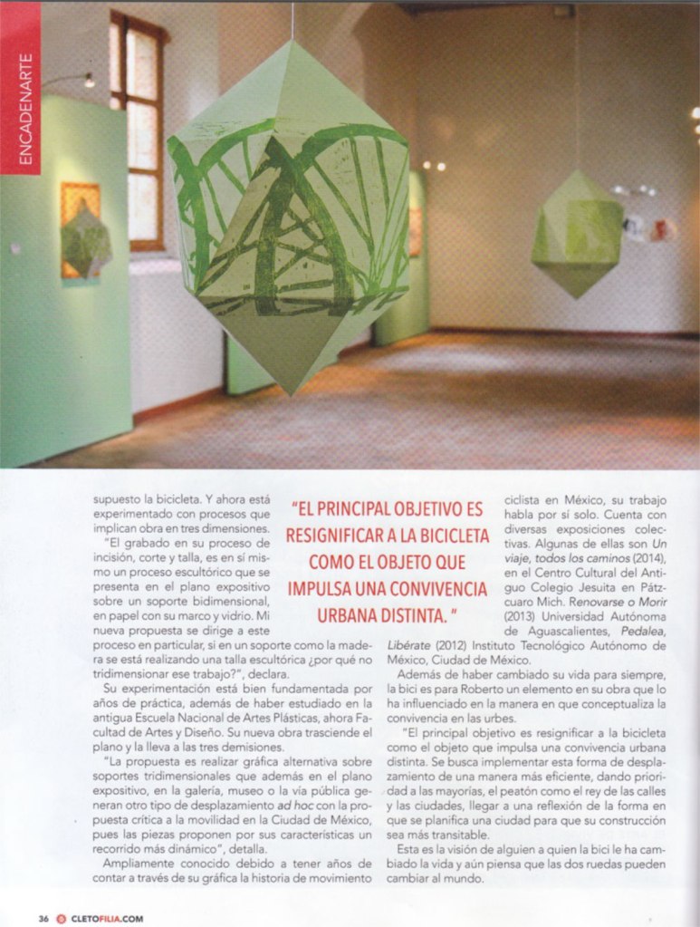Revista Cletofilia, entrevista “La bicicleta le pudo haber quitado la vida, pero lo doto de arte” Número 004, 2014