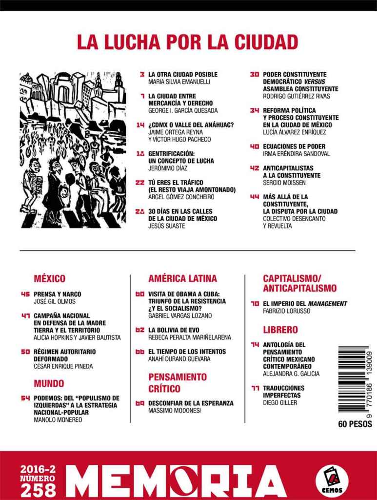 Revista Memoria “La lucha por la ciudad” Número 258, 2016-2.