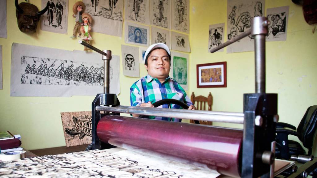 «La oveja negra de la familia, tres químicos y una artista. Estudié en la Escuela Nacional de Artes Plásticas, ahora Facultad de Artes y Diseño. A pesar de que llegué ahí por la pintura, me especialicé en grabado en madera. He hecho gráfica desde 2007 y en 2011 fundé mi propio taller, Taller de Grafica Nahual, un espacio para multiplicar ideas», nos cuenta.